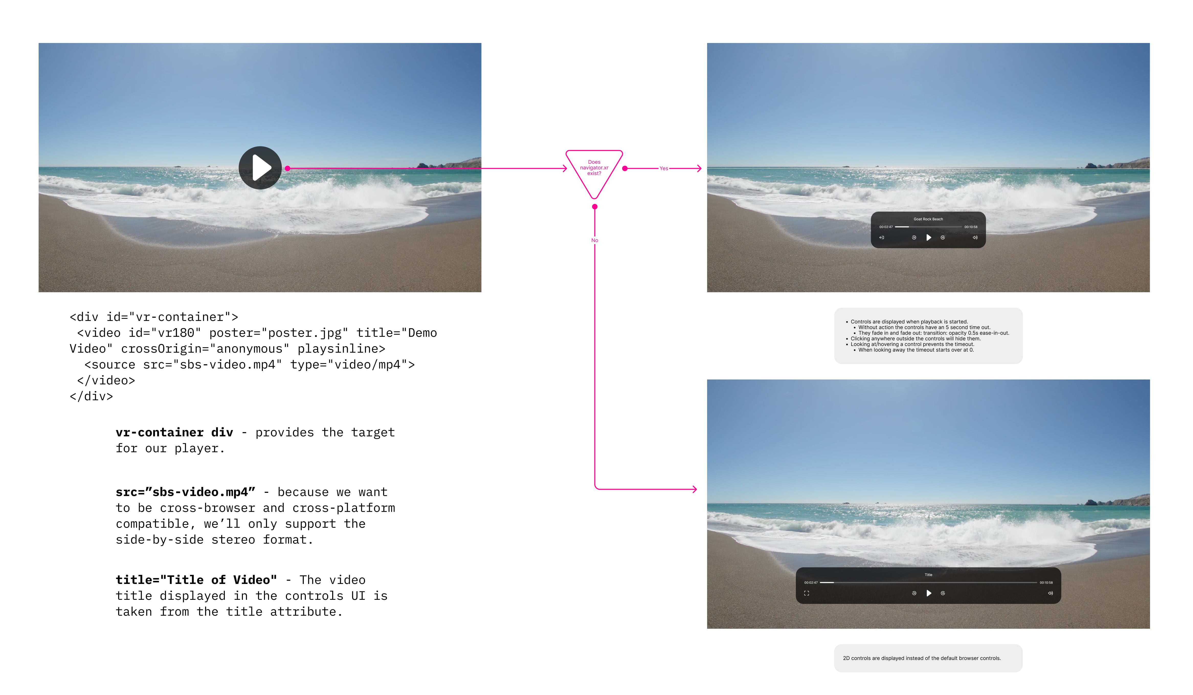 Web-based, cross-platform VR180 video playback solved